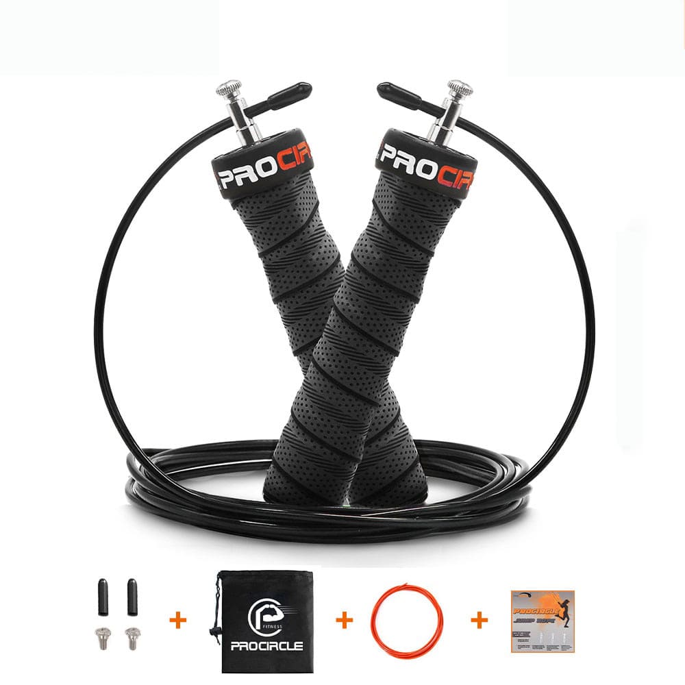 O pacote inclui : Corda de pular + cabo reserva + bolsa de transporte + instruções + conjunto de parafusos.