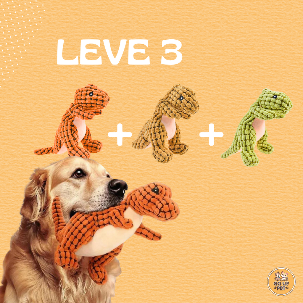 MAIS DIVERSÃO - A alegria de cachorro é brincar! O Dinossauro Mastigável é uma pelúcia leve e divertida. É um brinquedo interativo que faz barulho ao apertar, com um squeaky, para chamar a atenção do cachorro.